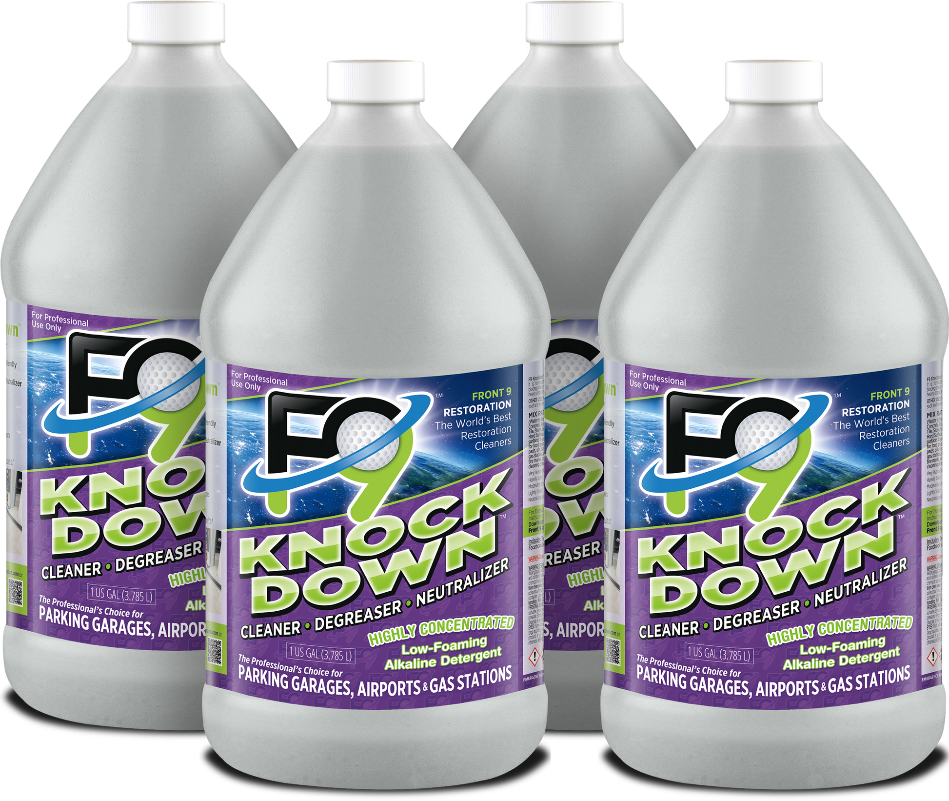 F9 Knockdown, Low-Foam Cleaner, Degreaser, Neutralizer - Case of 4 Gallons